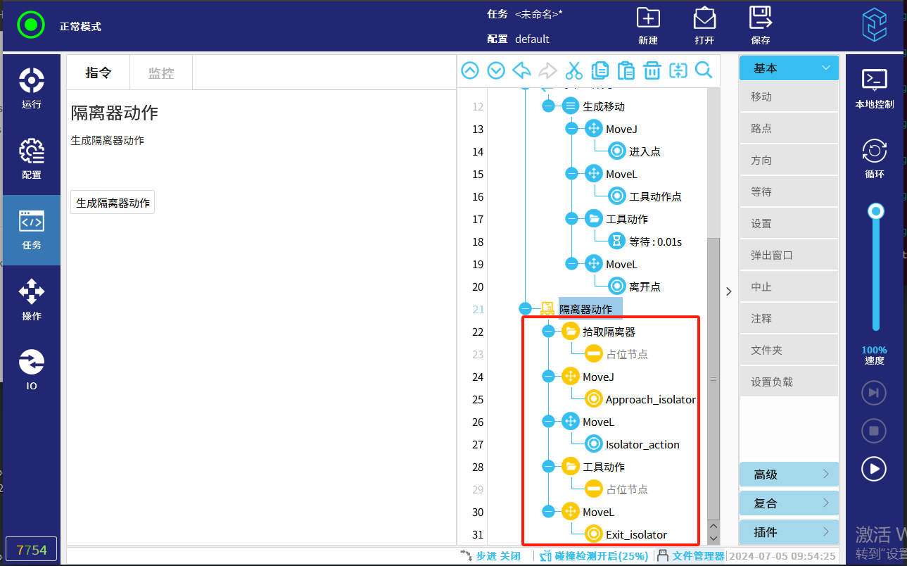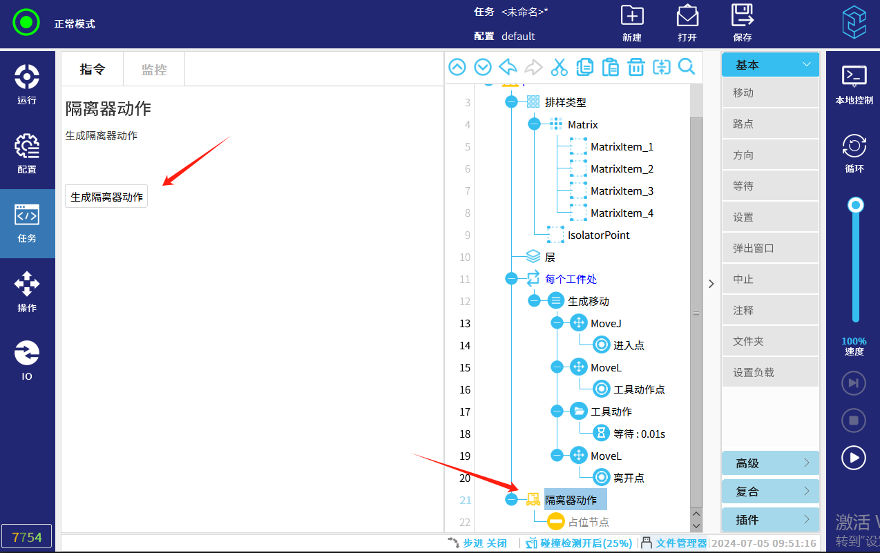 1.  ‘拾取隔离器’:此节点需要客户根据现场情况设置动作。