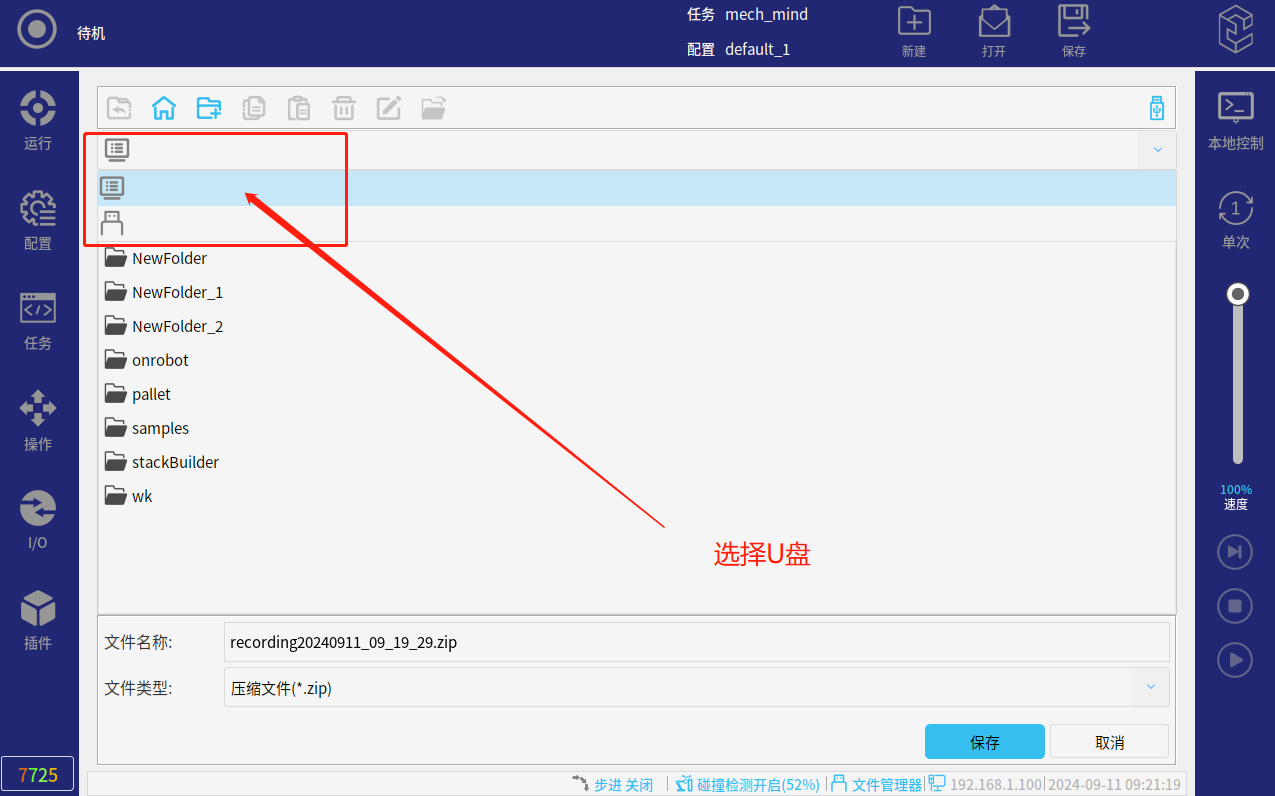 2.1机器人上插入U盘,u盘格式是应为FAT32,内存大小在32G以内