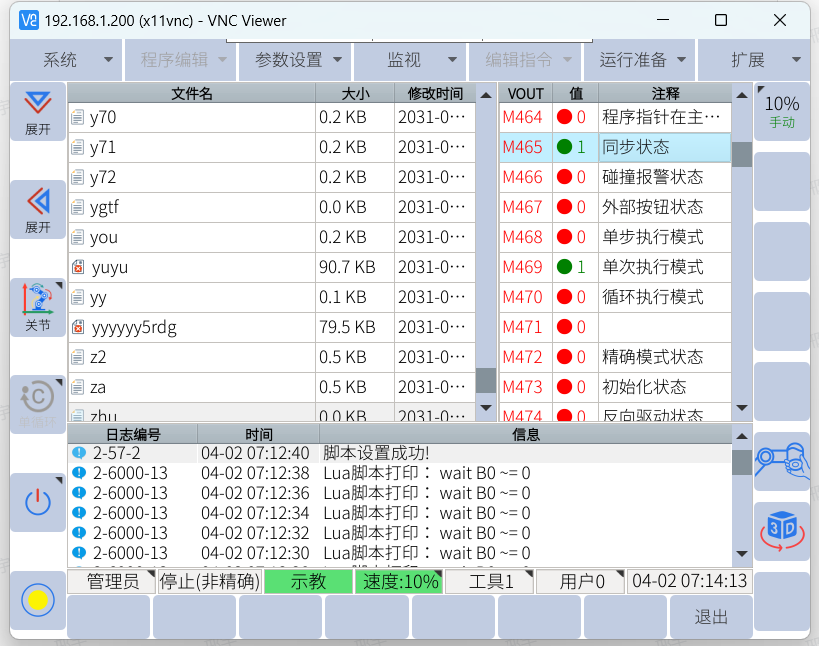 机器人开机处于初始化状态(通过虚拟输出 m473 判断,1 表示未完成初始化状态,0 表示完成初始化状态),指令函数可使用getVirtualOutput。