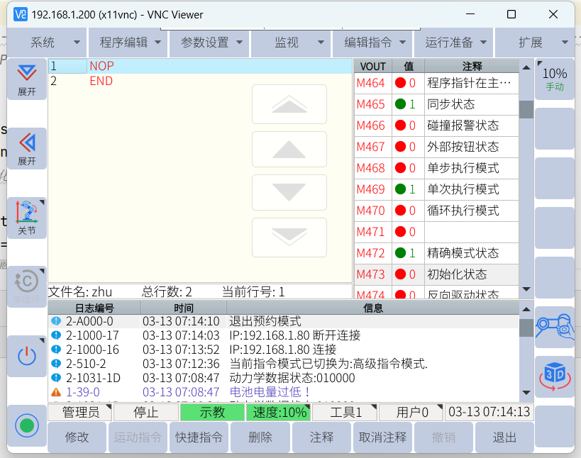注:所有SDK指令代码运行时,需要机器人处于远程模式(REMOTE)