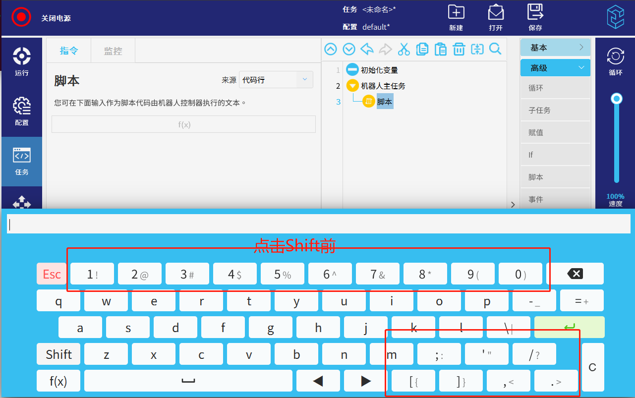2.  参考红框处,点击 "SHIFT"后,原本的数字键会切换至字符键,字符键则会切换至其他字符。