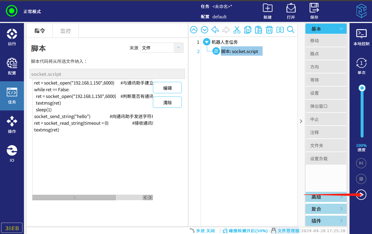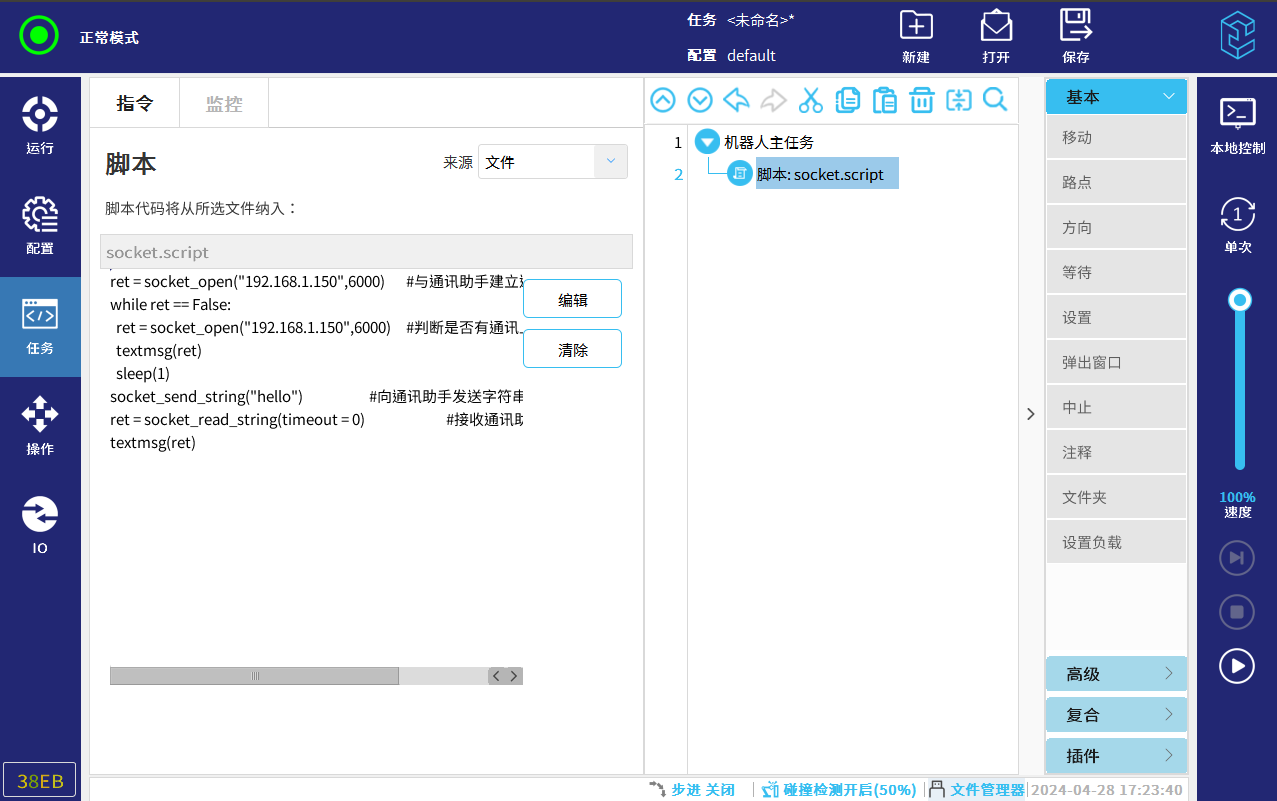 2.6. 编写通讯脚本。详情参考CS脚本手册-通讯目录下的socket,可在星空xk官网下载。技术资料-星空xk机器人