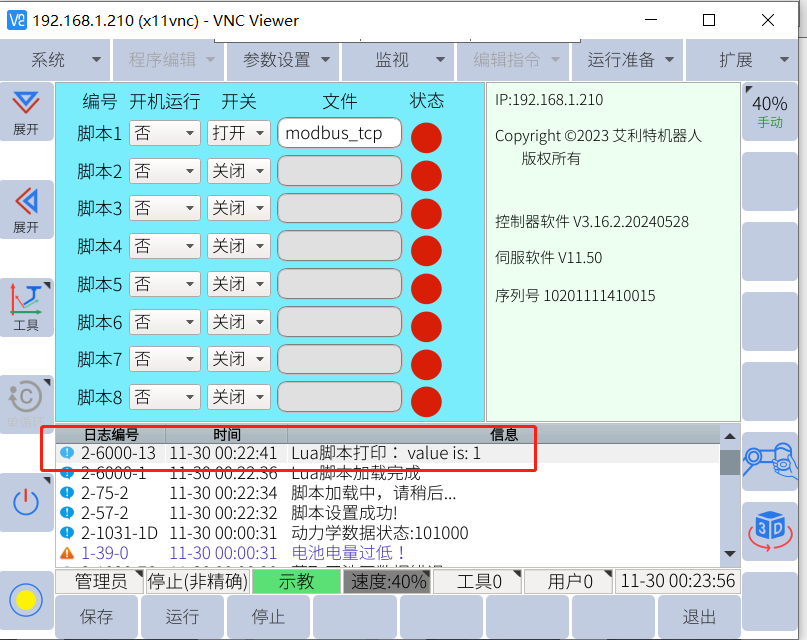 1).机器人作为从站可通过脚本直接读取写入寄存器数值,可将数值转化为全局变量,在示教器上进行显示或者调用