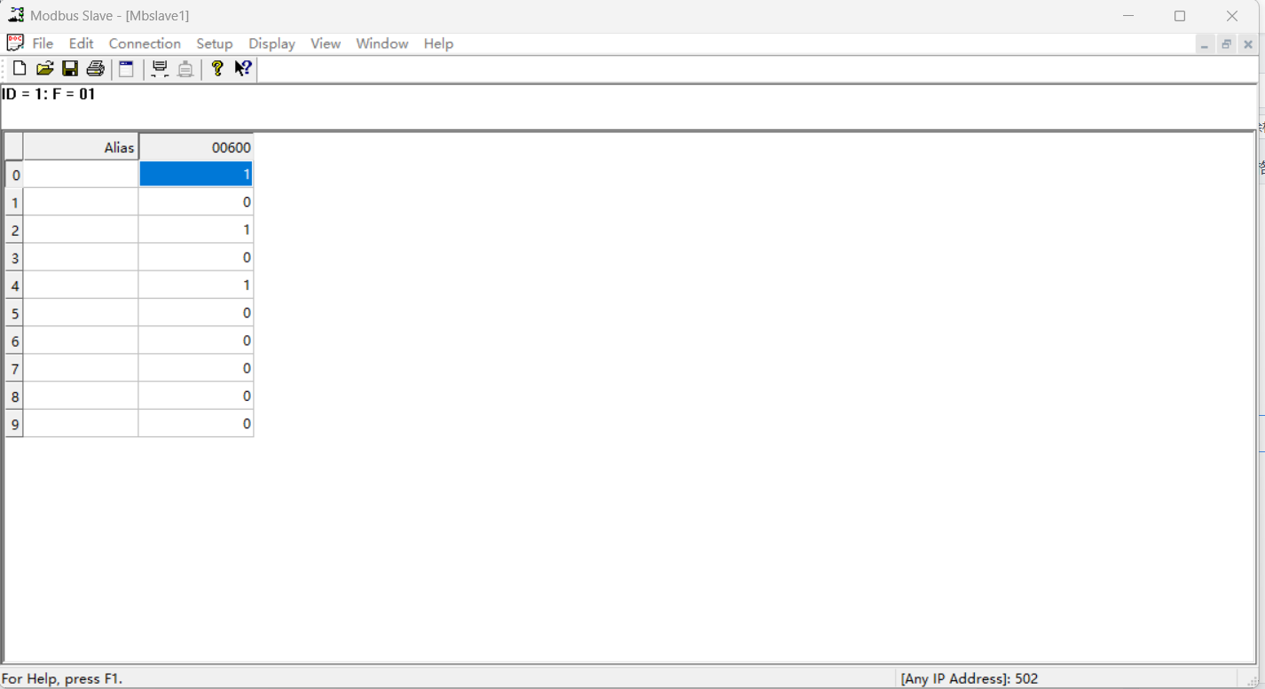 助手端将400寄存器设置为123,401寄存器设置为23,402寄存器设置为-345,403寄存器设置为-876,404寄存器设置为2345