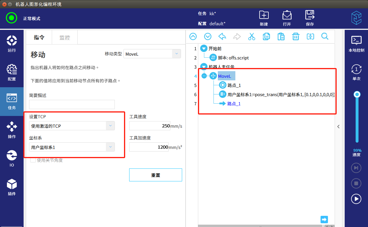 3.4要注意偏移后的点位数据是在那个坐标系下,与移动指令配置中的是否相同。