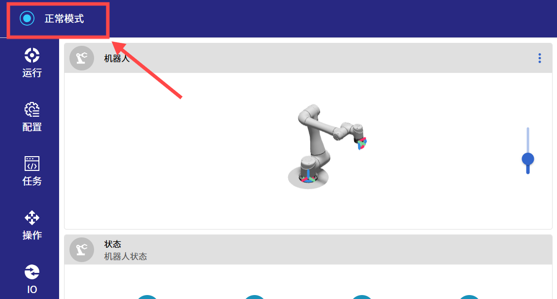 (5)进入网页版示教器后,和另外两种方法一样,先点击下方菜单栏里面的获取控制按键,等待获取控制按键从白色变为绿色后,即可操作网页版示教器上面的操作界面。
